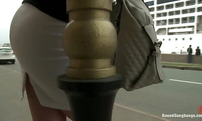 stunner époustouflant joue de son manchon à l'extérieur et atteint un point culminant après l'autre