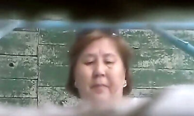 Mature Asian lady in the shabby restroom room filmed on hidden cam