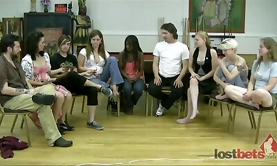 Amateur Art Students Tugging on Models Cock
