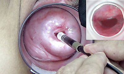 A endoscope japanese camera is slammed in the cervix to watch inwards the uterus.